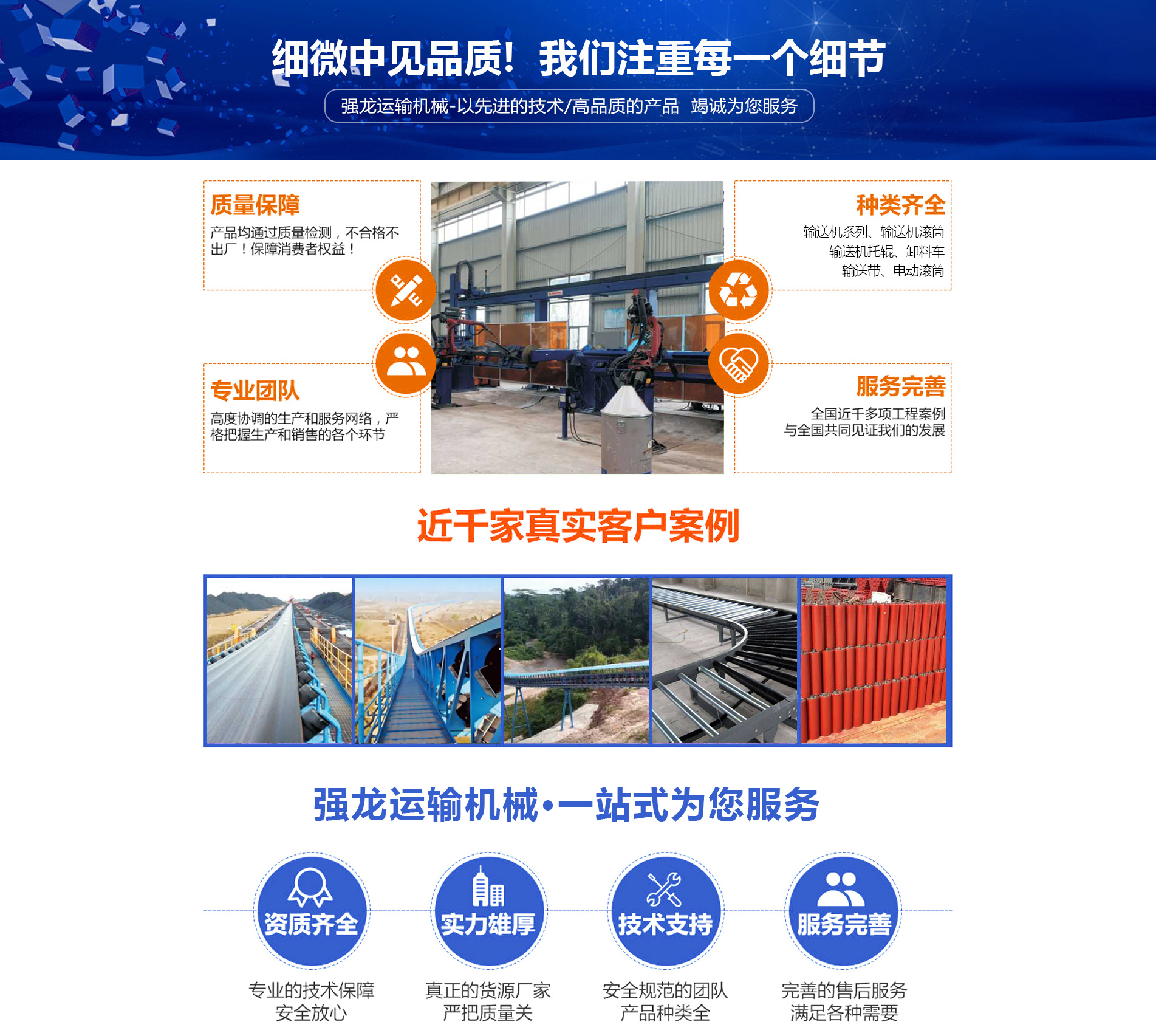 河北強龍運輸機械有限公司位于衡水水市,成立于2019年,目前擁有300名員工。專業研發、制造和管理專業的人才。擁有一批集多元化的機械和電氣工程師的團隊,具備提供從解決方案、設計開發、集成制造到安裝調試、培訓指導、交付使用一站式的自動化物流倉儲的能力,以確保項目的時間、品質和制造過程順利完成,長期穩定的協作供應鏈。提供高品質的非標精密組件和標準組件。嚴格的控制管理流程,為客戶提供經濟合理的規劃方案,實施科學的加工質控體系,提供安全的自動化設備,和完善的售后服務。我公司生產各種帶式輸送機系列、波狀擋邊大傾角帶式輸送機、TDSX型系列膠帶輸送機、DTII( ...